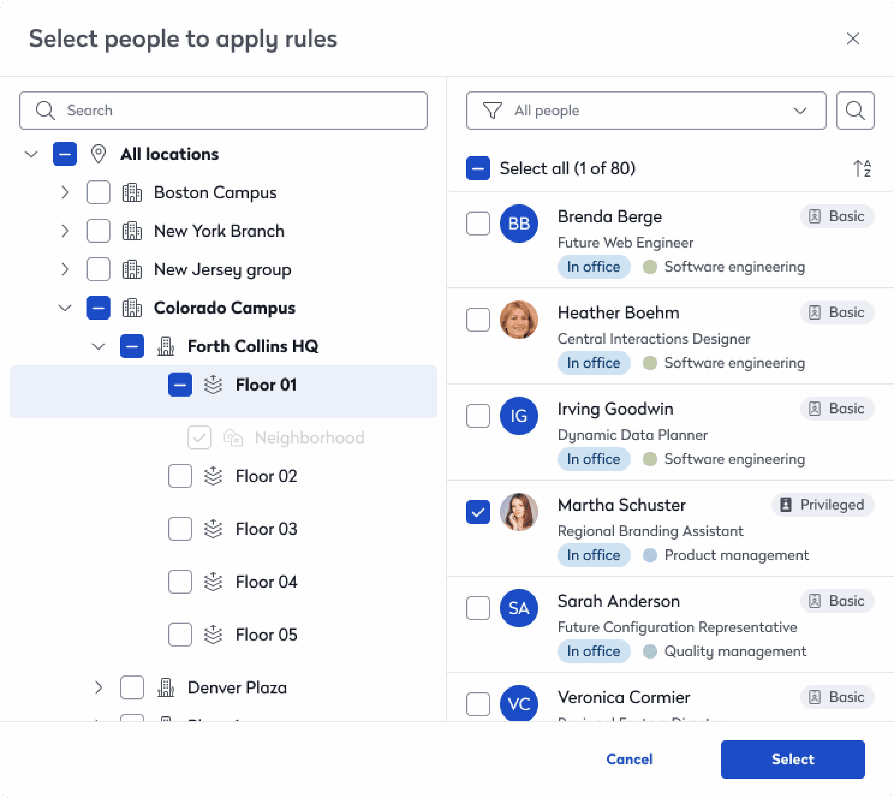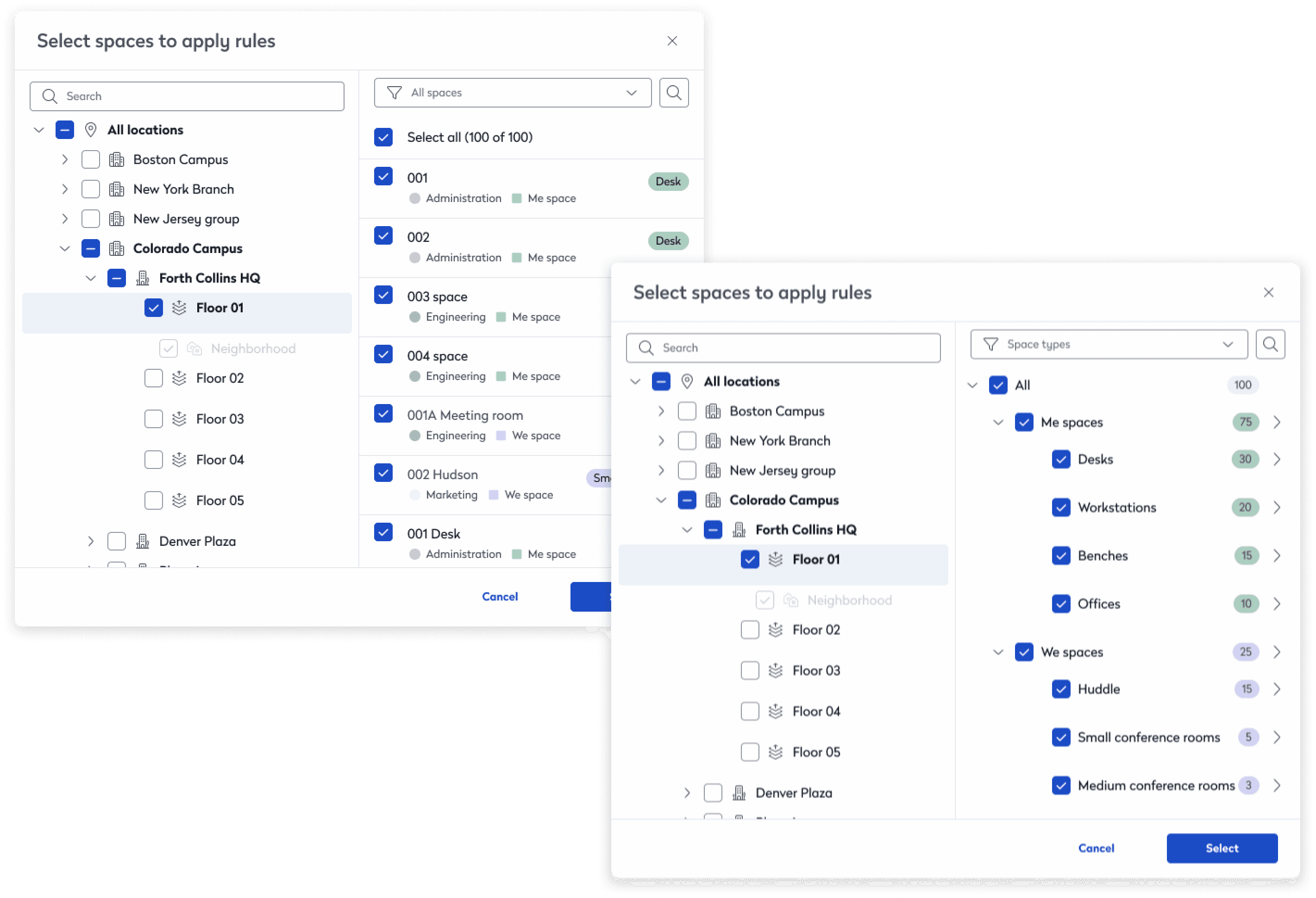 Bulk selection at any level (campus, building, floor)