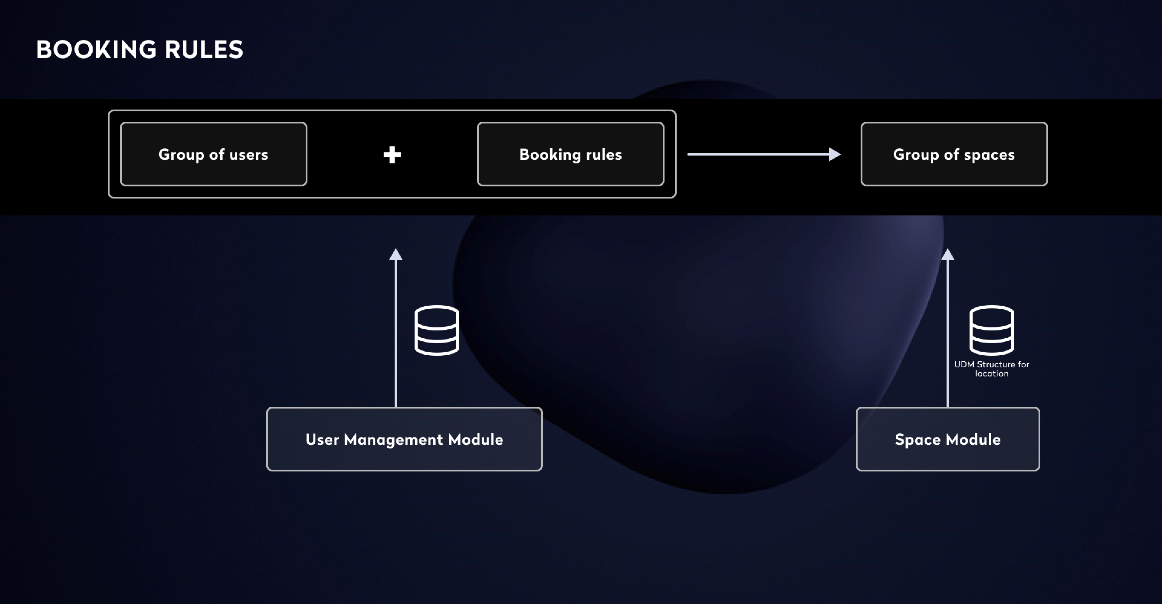 Each booking rule is a self-contained policy object that combines all three.